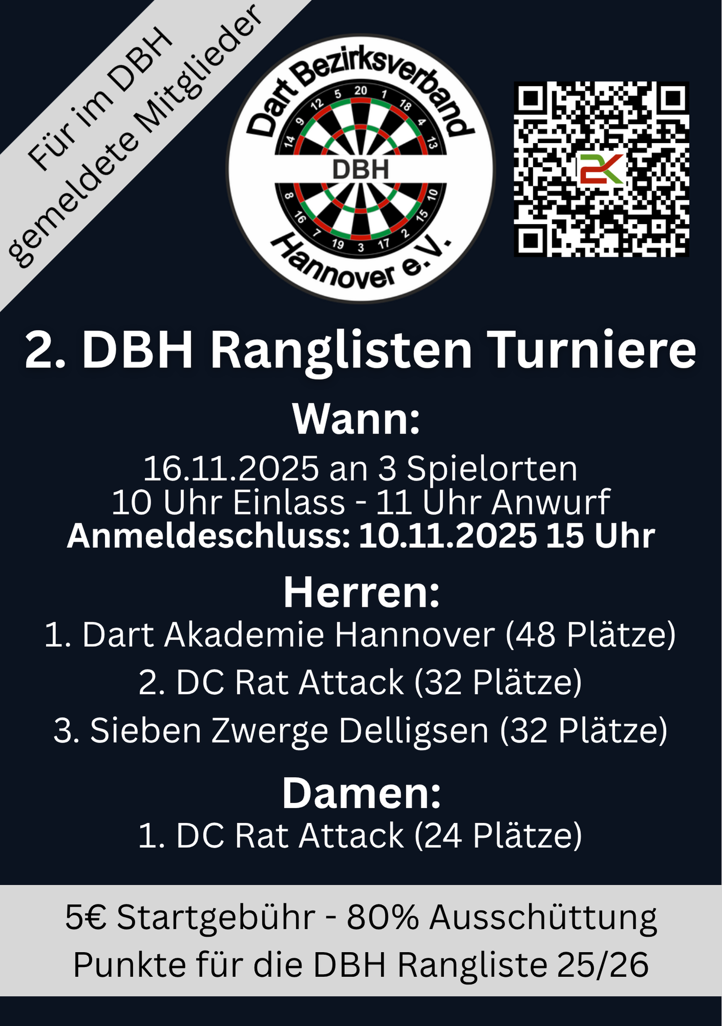 Die 2. Ranglistenturniere finden wieder an drei Spielorten statt:
